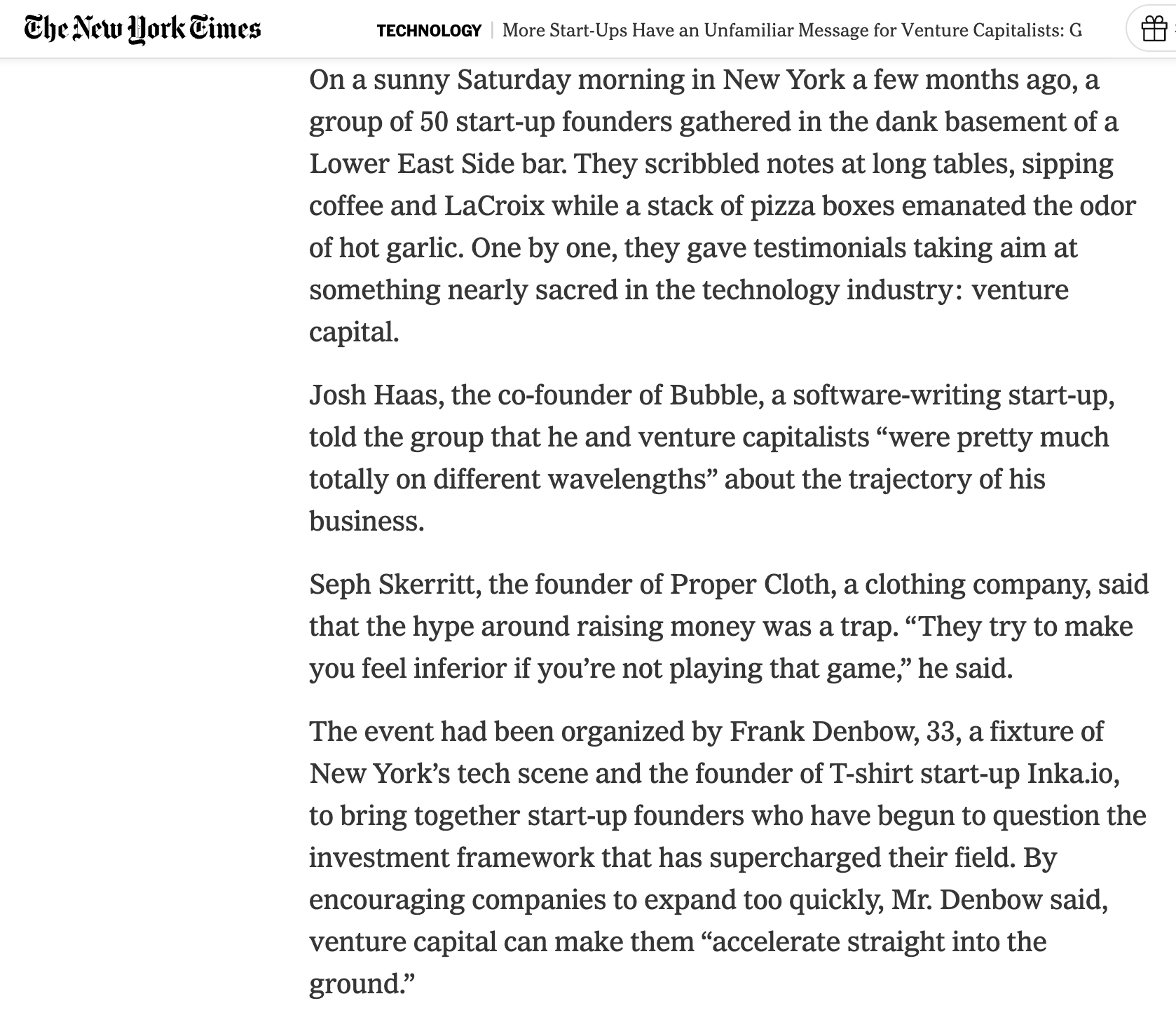 Frank has given feedback to 100s of entrepreneurs (some of their feedback here), personally and through mentoring at HF0, Entrepreneurs Roundtable, NY Fashion Tech Labs, Parallel18, HBCU.vc, and Ignite. If you're a startup and you want feedback on your onboarding / first time user experience or your investment deck, fill this out.